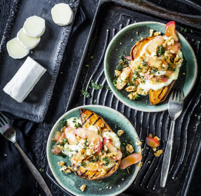 Patate douce grillée au miel et à la bûchette de chèvre affinée