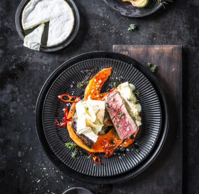 Filet de bœuf gratiné au potiron et chèvre-boîte